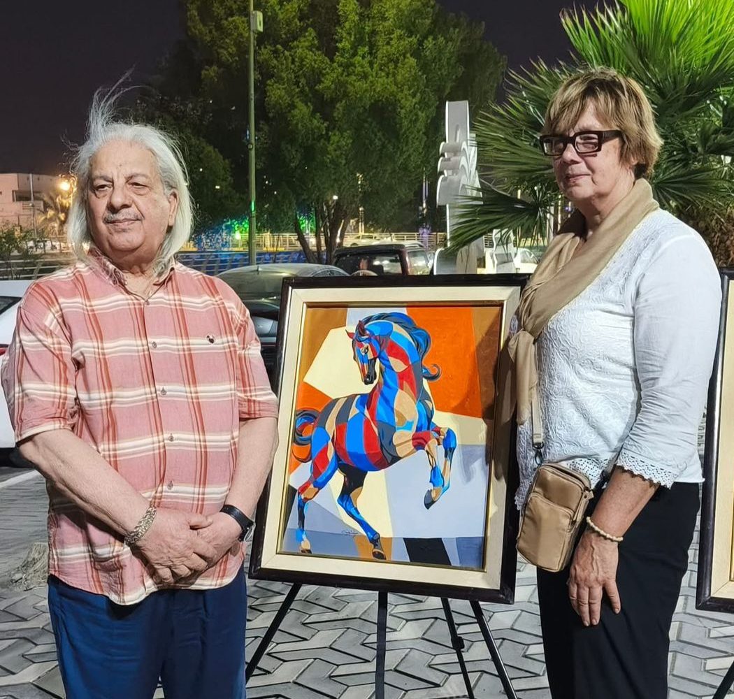 ومن حسن المصادفة ان يزور المعرض وفد اجنبي والذين اعجبو بأسلوب الفنان مع اسألتهم عن الأسلوب التكعيبي الذي اختاره الفنان ..