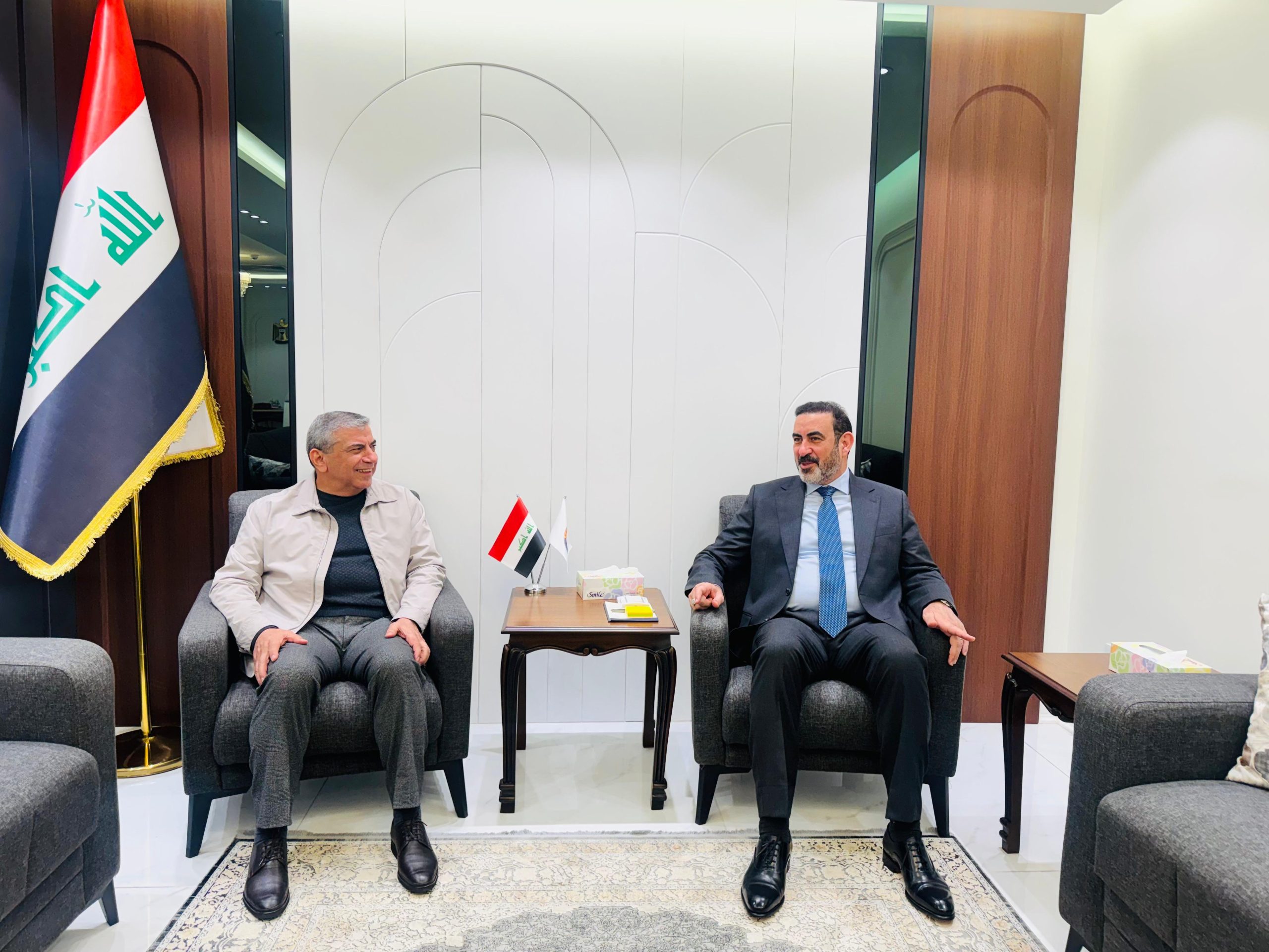 التقى رئيس اتحاد المقاولين العراقيين والعرب السيد علي فاخر السنافي معالي وزير التخطيط والتعاون الانمائي وكالة الدكتور خالد بتال، في لقاء خصص لبحث أوضاع قطاع المقاولات والتحديات التي تواجه الشركات الوطنية خلال المرحلة الحالية.